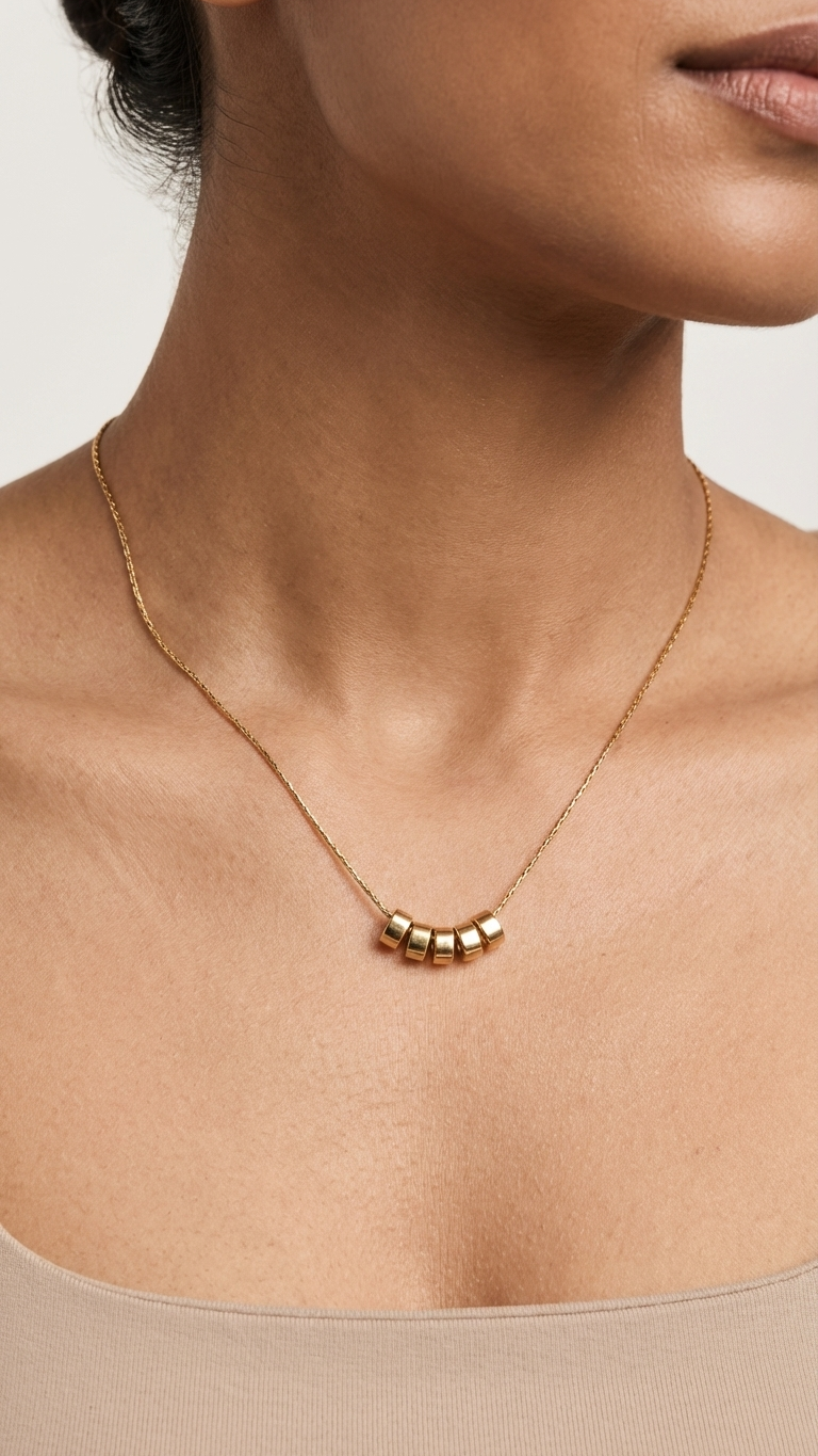 The beads are set to create a subtle downward curve, offering a simple yet refined focal point. Its dainty design is perfect for wearing alone for a subtle accent or as a foundational piece for layering with bolder necklaces.