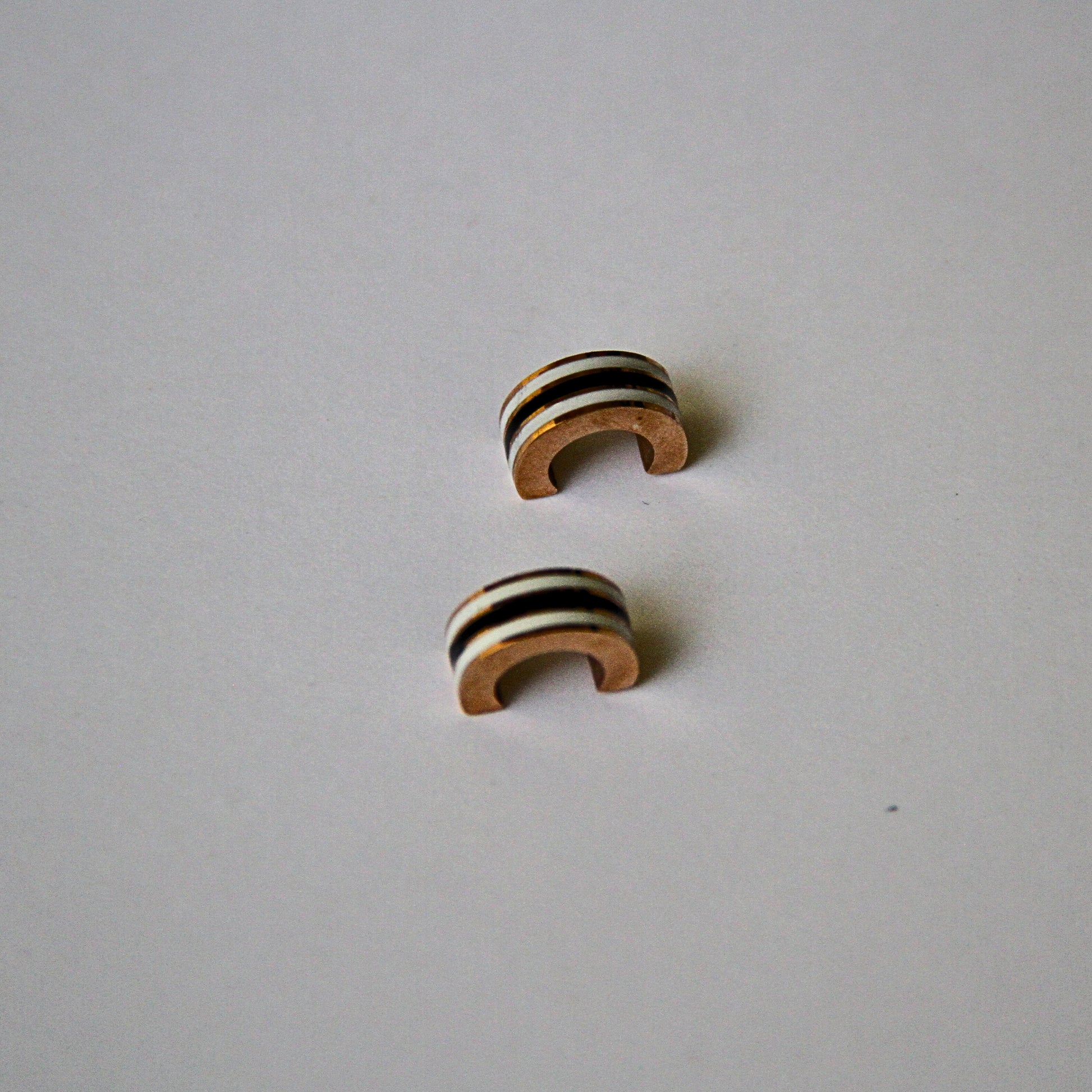 Crafted with precision, these gold-plated huggie hoops feature twin black enamel stripes that add modern sophistication to any outfit. Their anti-tarnish coating ensures lasting shine, making them an ideal choice for daily or festive wear.