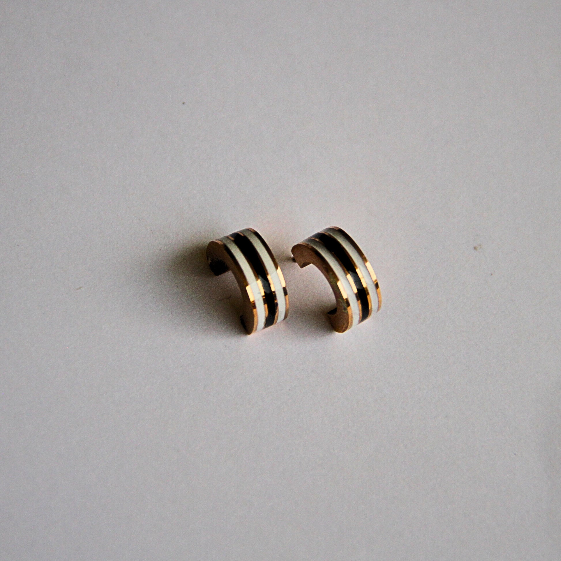 Gold Plated Enamel Sleek huggie Stripe Pattern Hoop Earrings