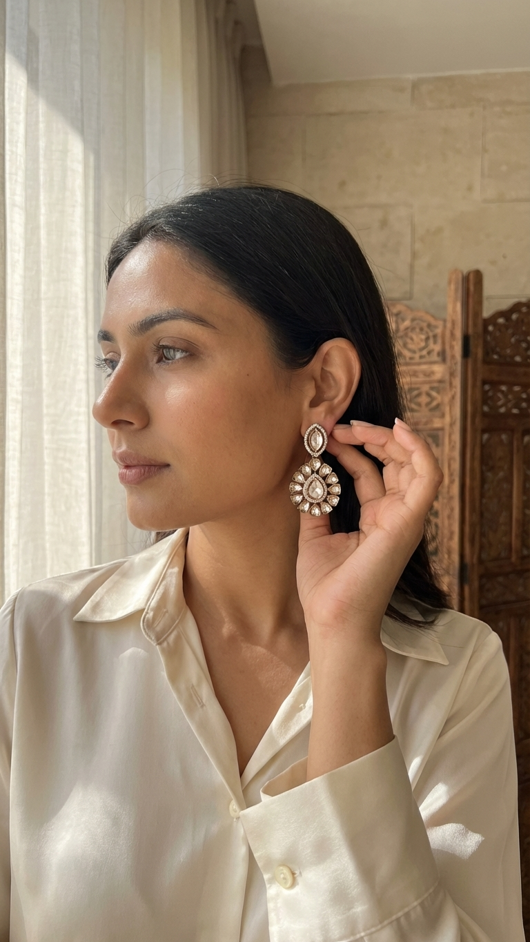 Wear it last: Always put on your earrings after applying makeup, perfume, or hairspray to prevent chemical buildup on the stones.
