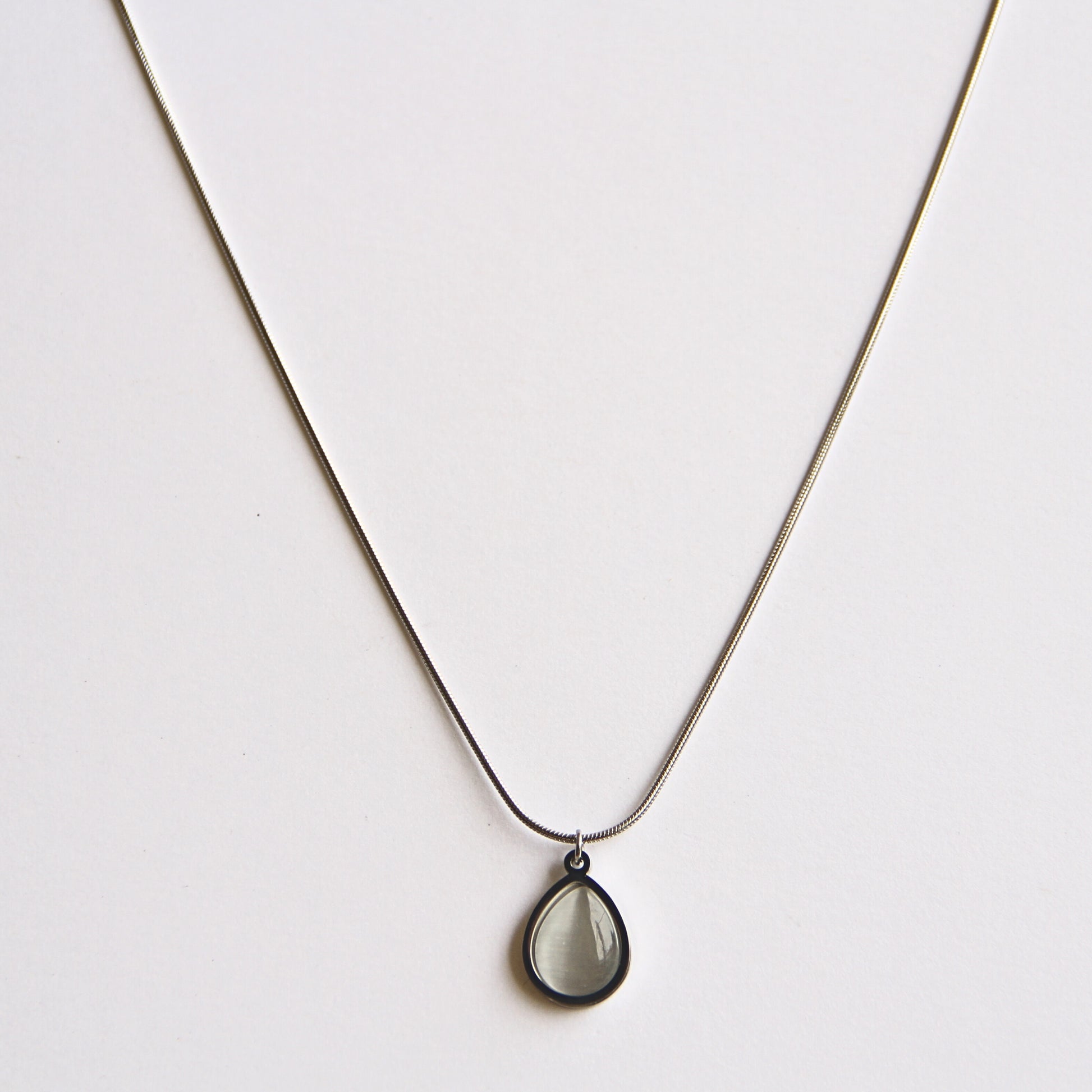 Minimalist Silver Tone Necklace with Iridescent Teardrop Pendant