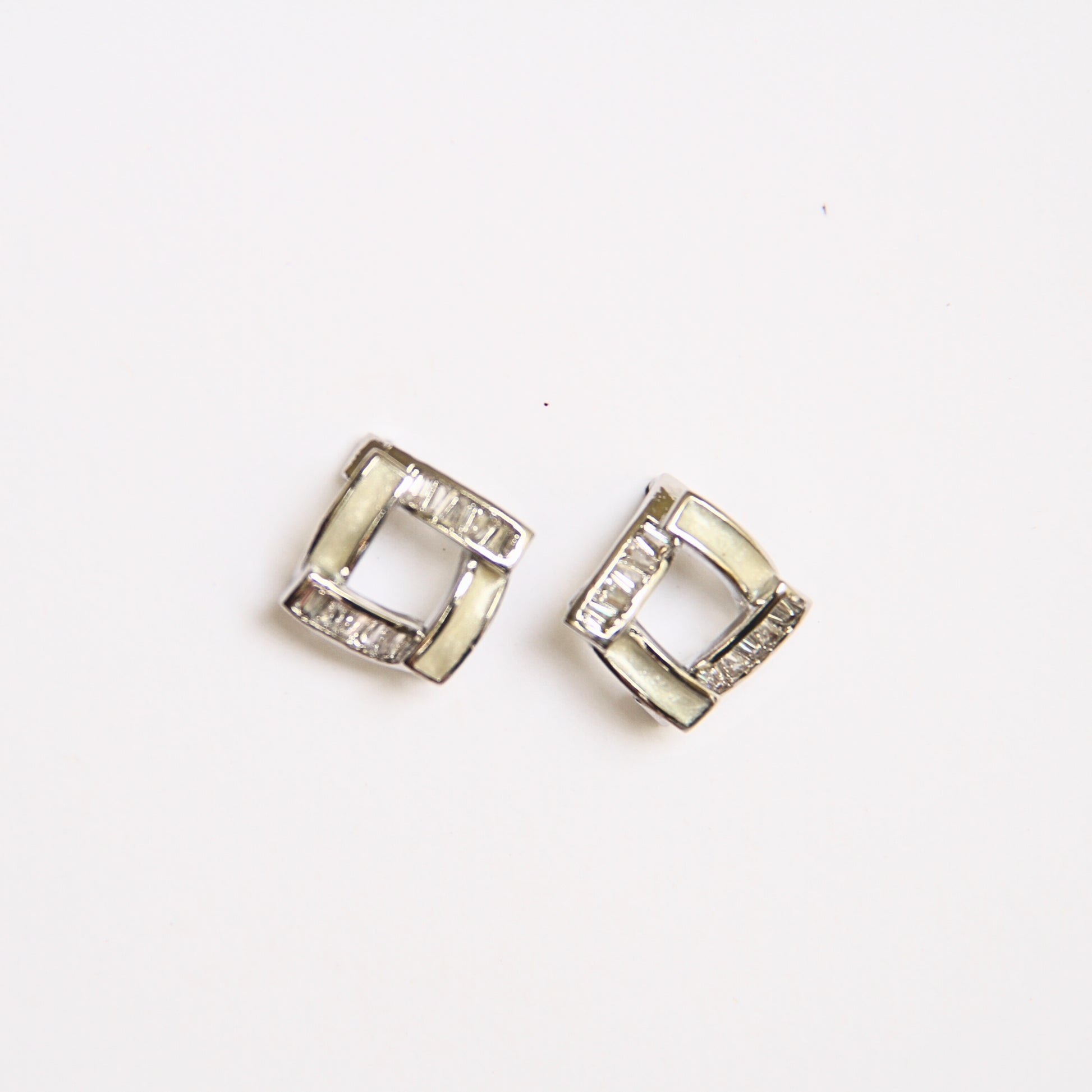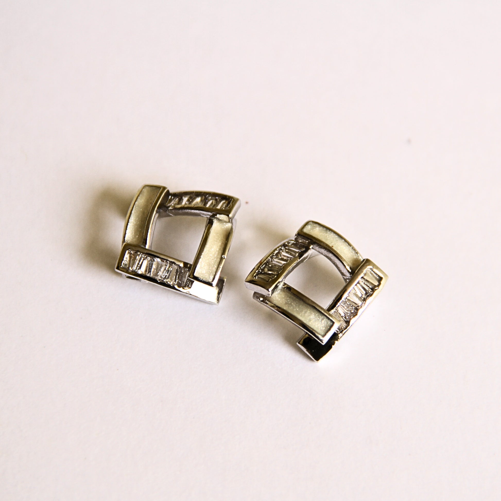 Add a touch of modern sophistication with these geometric silver stud earrings. Their sleek, structured design and high-shine finish make them perfect for elevating everyday outfits or adding polish to your evening look. Crafted for comfort and durability, these anti-tarnish earrings blend bold lines with timeless elegance — ideal for the woman who loves minimal luxury.