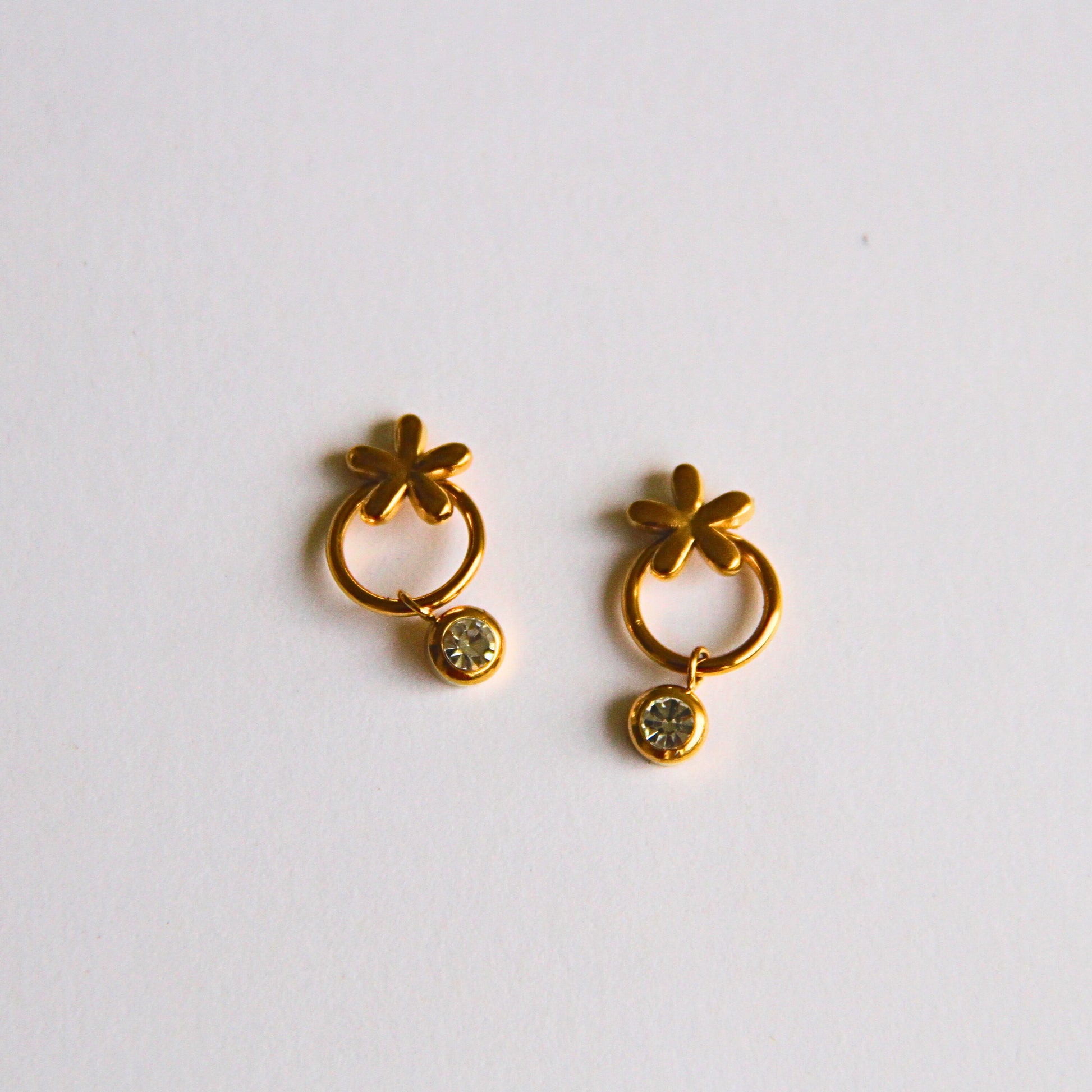 Simple Flower Charm Gold Earrings